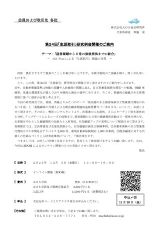 この度、第24回「生涯取引」研究例会を12月5日に開催させて頂きます。